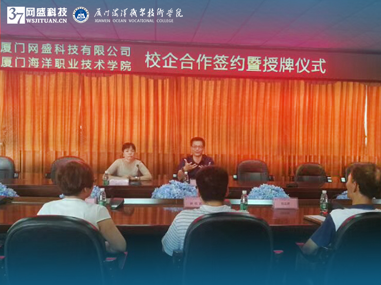 2018年7月20日,廈門網盛科技與廈門海洋職業技術學院校企合作暨授牌儀式在海洋學院隆重舉行,網盛科技創始人、總經理駱葉南先生協調公司人力資源總監郭麗萍女士出席簽約儀式。